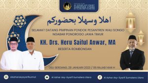 Sabtu, 28 Januari 2023 lalu, Islamic Boarding School Al-Azhar Asy-Syarif Sumatera Utara kedatangan Pimpinan dari Pondok Pesantren Walisongo Ngabar Ponorogo Jawa Barat Bapak KH.Drs, Heru Saiful Anwar, MA. Penyambutan disambut dengan sangat hikmat oleh Muhamad Adyan MS, ST.MM (Ketua Yayasan) dan Jajaran Tim Al-Azhar Asy-Syarif Sumatera Utara.