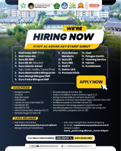 Islamic Boarding School Al-Azhar Asy-Syarif Sumut membuka kesempatan bagi kamu yang berkomitmen tinggi dalam dunia pendidikan dan pelayanan untuk bergabung menjadi bagian dari tim kami!