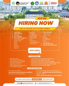 Inilah kesempatan emas bagi Anda yang ingin menjadi bagian dari lingkungan pendidikan Islam yang unggul, profesional, dan modern. Jika Anda memiliki semangat mendidik dan nilai-nilai Islami yang kuat, Al-Azhar Asy-Syarif Sumut adalah tempat yang tepat untuk berkarir dan bertumbuh.